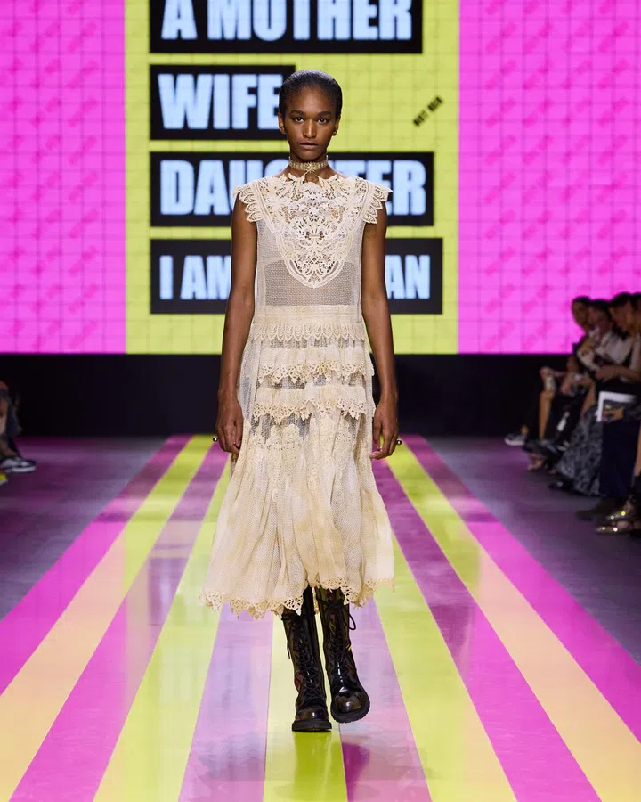 What: It's been seven years since Dior creative director Maria Grazia Chiuri showed her first collection for the house, and throughout it all, she's never wavered in her belief in support other women artists and creatives. This season continues in that vein, with Chiuri furthering her exploration of the relationship between femininity and feminism - she is convinced that fashion has, more than ever, "a responsibility to help women realise their worth and express their differences", according to the press release.