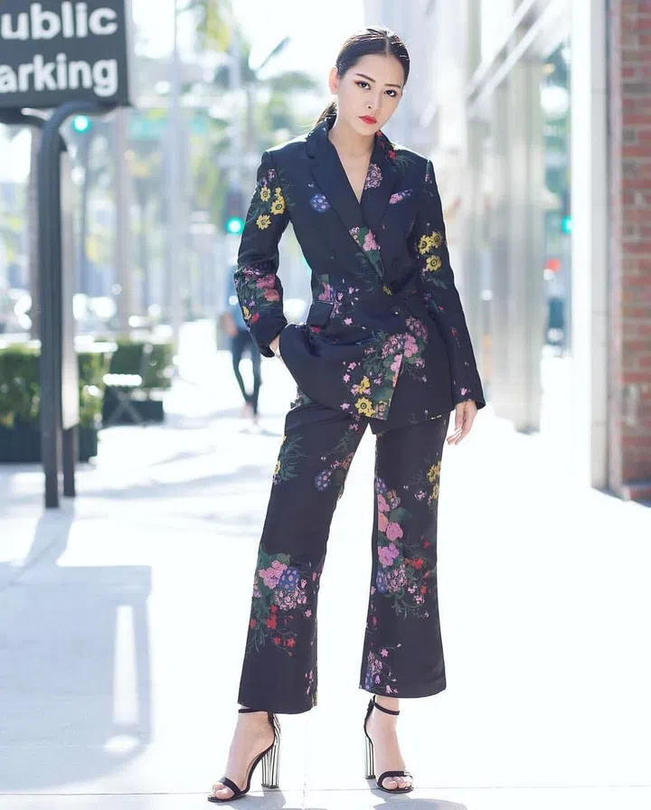 Vietnamese actress Chi Pu opted for a total #GirlBoss approach in this pantsuit look paired with simple strappy sandals that didn't compete against the suit.