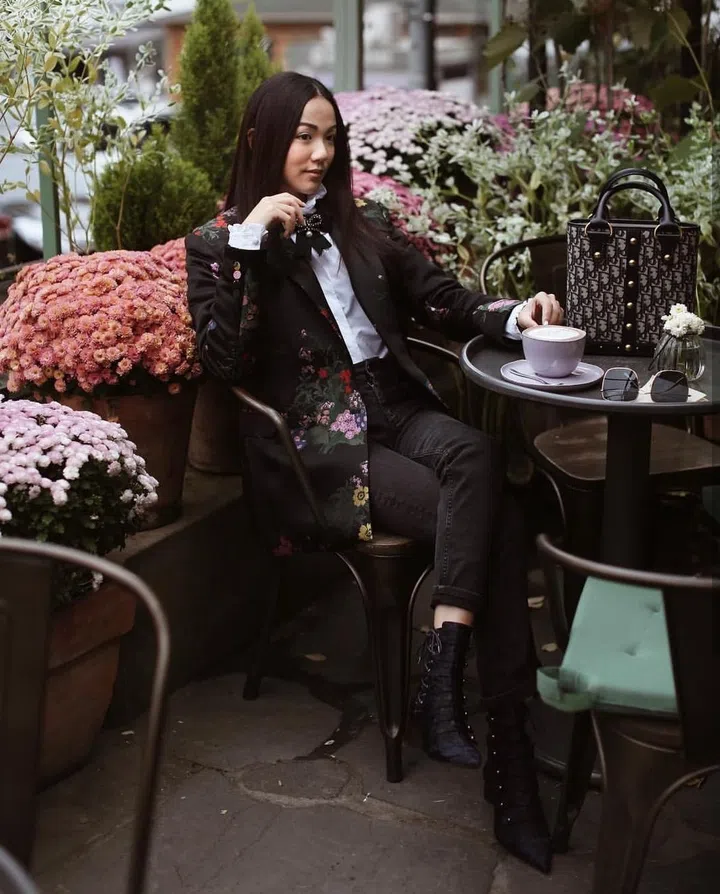 Indonesian personality Olivia Lazuardy caught our eye at last year's Singapore Fashion Week and here, she toughens up this tiered dress with no-nonsense booties.
