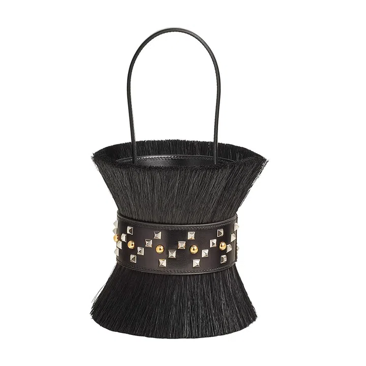 The way Hermes describes this hourglass-shaped bag is quite fierce: “The Mini Medor bag slips into a dress of black horsehair”. Like a little outfit for your bag! That ‘dress’ itself is dyed in the house’s textiles workshops and shaped by a master wigmaker. And on its cinched waist, a studded leather belt reminiscent of the famous collier de chien hardware.