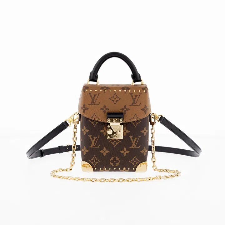 The latest Camera Box bag by Louis Vuitton is a streamlined reinterpretation of a model from the Fall/Winter 2016 runway collection. Part petite malle trunk-inspired (see the S-lock clasp and rivet details), and part city bag, it’s got a nice combination of structure and slouch. This new version also uses a mix of the brand’s monogram and monogram reverse canvas, and the options of carrying it as a top handle, or on the shoulder with either a metal chain or a thin leather strap.