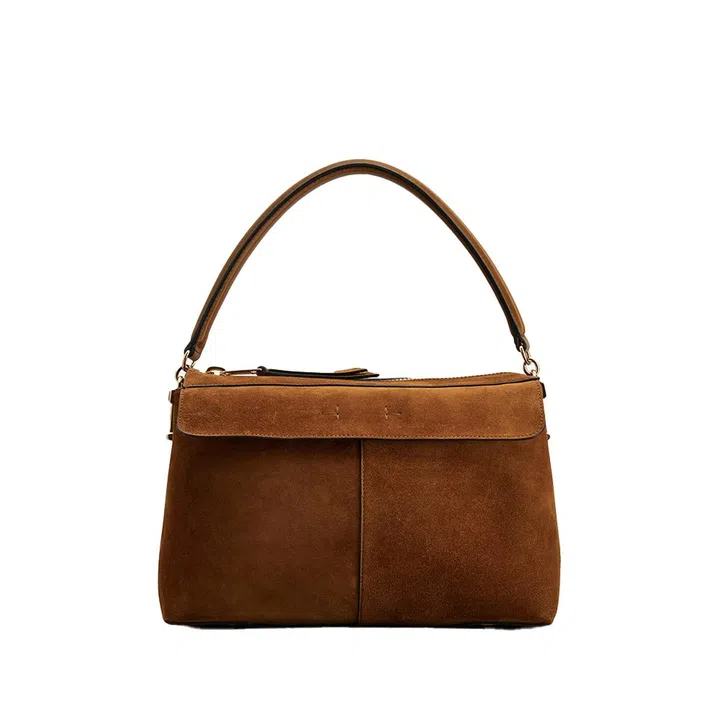 One of Tod’s more underrated bag collections is the T Case, which is defined by soft slouchy leather, T Timeless hardware on the sides of the handles, and an elegant latch cover. This season, the Italian label has introduced a new Boston bag style to the range. The T hardware on the sides is now covered in leather, the flap latch front is embroidered with a subtle pair of Ts, a zip pocket makes getting into the bag easier than ever, and there’s the option of carrying it by its leather-wrapped top handle or an included shoulder strap.