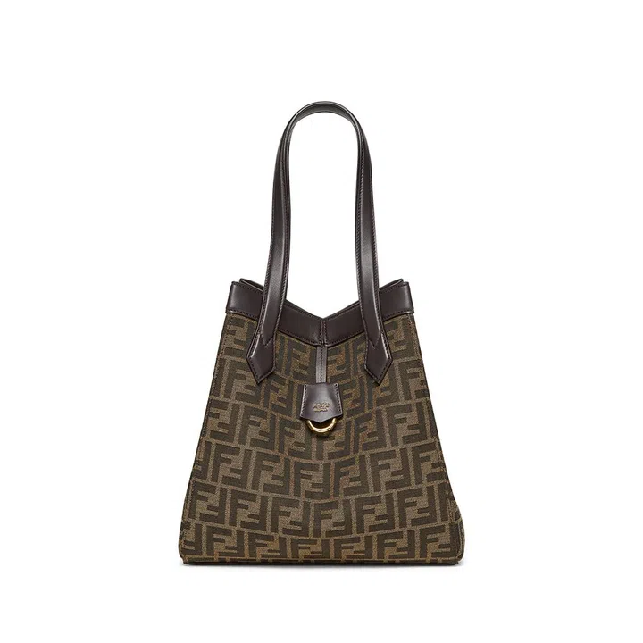 Can’t decide between a roomy tote or a compact bucket bag? Fendi’s nifty new origami lets you have your cake and eat it too. It’s constructed from 38 different pieces – available in combinations of grained leather, FF-logo jacquard, interlaced leather and shearling – with small straps on the side and magnets on the frame that snap it in and out of its tote/bucket form.