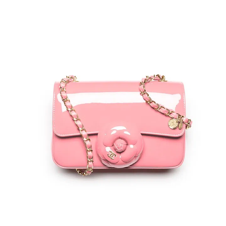 How important is the camellia to Chanel? “It’s an eternal code of the house” says creative director Virginie Viard in the notes to her Fall/Winter 2023 collection that’s all about the flower. The camellia takes true pride of place this season on the signature flap bag: replacing the traditional double-C clasp. This one in baby pink patent leather is right on the money too if you’re still riding Barbie wave.