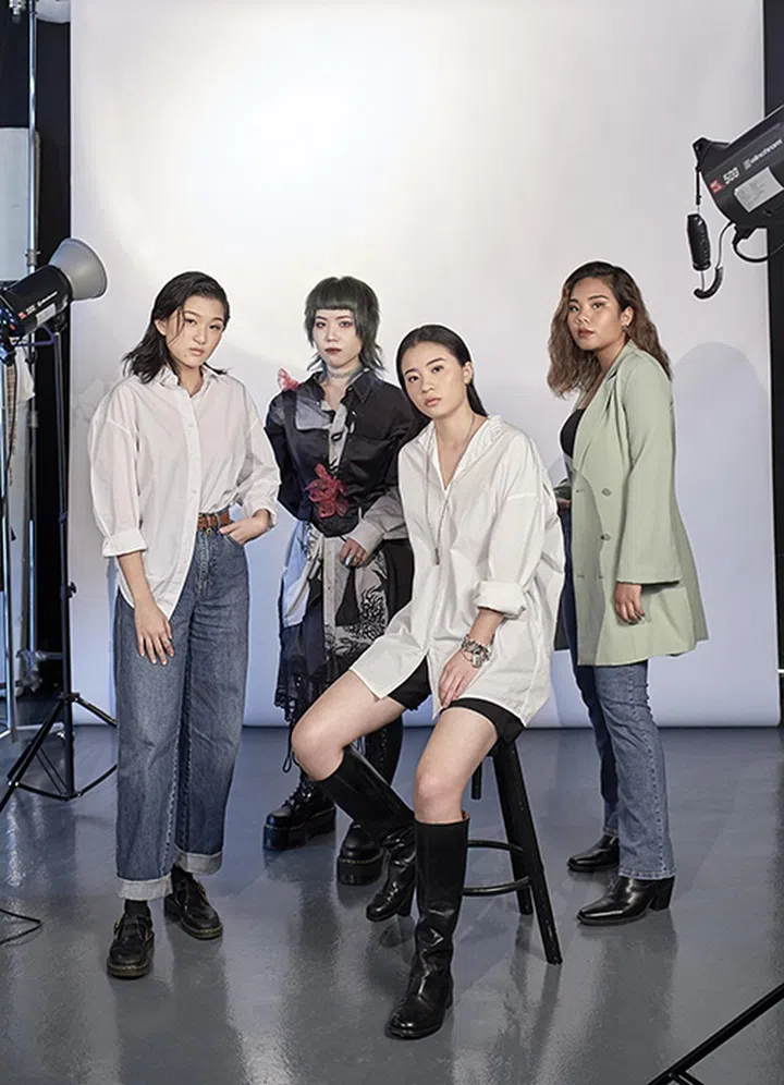 Many of the visuals produced for commercial projects and magazines including this one would not have been possible without freelance styling assistants like (from left) Jamie Lee, Misato Katoh,Yuan Kun and Shannahlette Jenn Lim, who styled themselves here in their own clothes and accessories – no assistant needed.