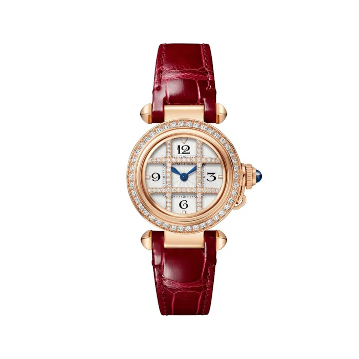 Pasha de Cartier Grid 18K pink gold watch with diamonds on alligator skin strap, $30,900