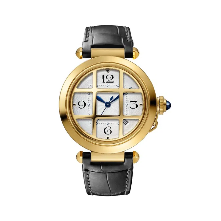 Pasha de Cartier Grid 18K yellow gold watch on alligator skin strap, $26,600