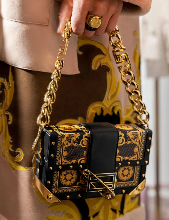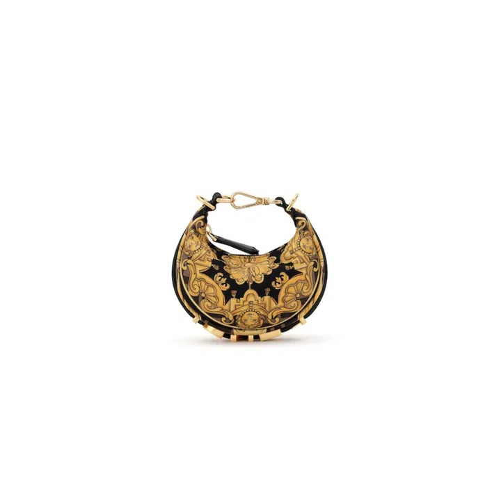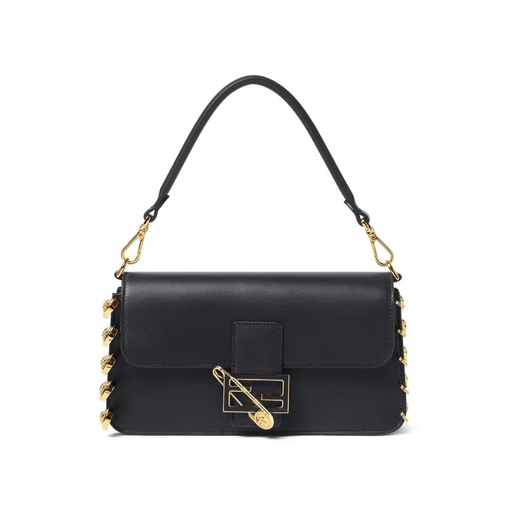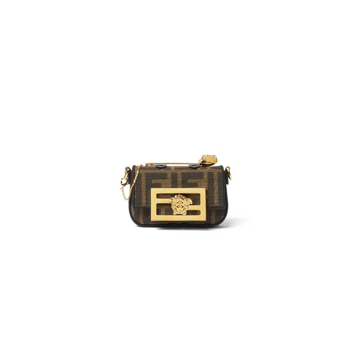 Fendi’s Baguette Trunk Mini bag flaunts Versace's signature safety pin hardware.