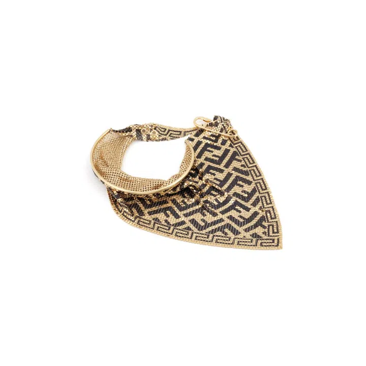 The two Italian powerhouses have melded each other’s iconography with good humour – Fendi’s FF logo combined with just about every signature Versace emblem. Take how it’s been incorporated into Versace’s famous safety pin hardware – the results looking serendipitously like a variation of the O’Lock, a carabiner-shaped line designed by Fendi creative director of jewellery Delfina Delettrez Fendi introduced last year.
