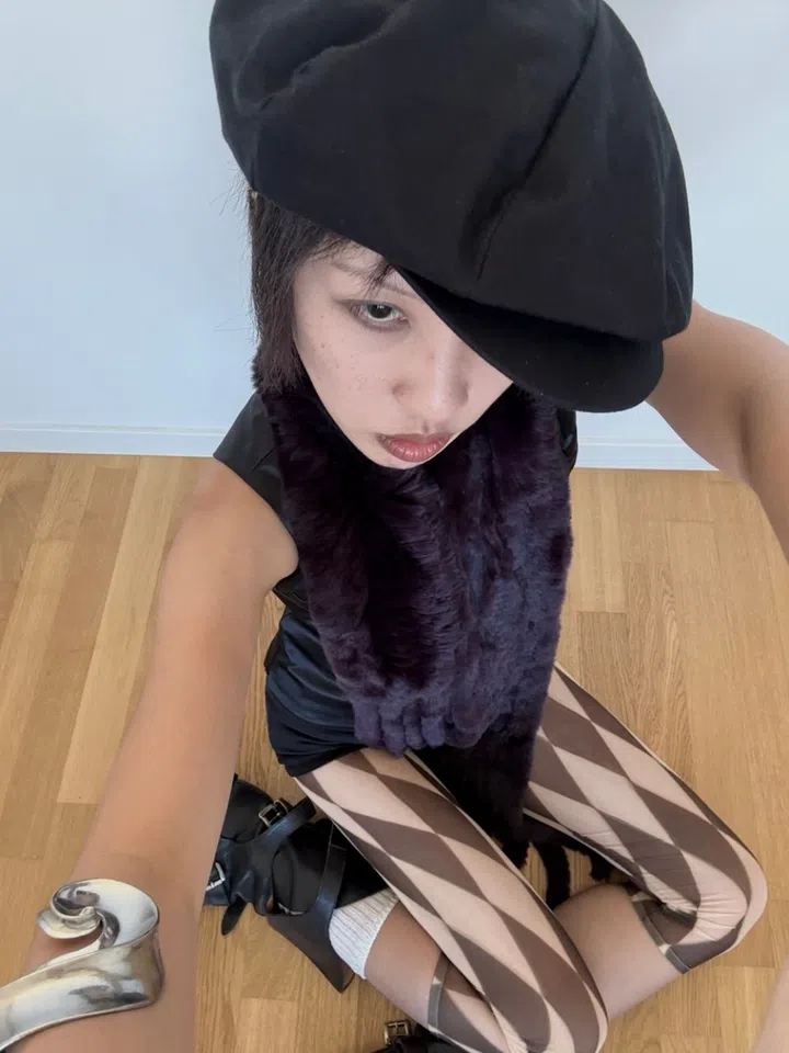 WHAT SHE WOULD BUY FROM FW2025 IF MONEY WERE NO OBJECT: “(Clockwise from top left corner, above) This green dress from Julian Klausner’s debut collection for Dries Van Noten – which didn’t disappoint – that stood out to me in particular for its soft texture and draping around the shoulder and torso; a cloche‑style hat from Miu Miu – I like how the brim nearly covers the eyes, adding privacy and a sense of mystique; the Simone Rocha Hare bag – not just a statement accessory, but also an emotional support pillow that makes for a fun conversation starter; and this dress from Ottolinger – when I’m in the mood to play with fashion and not take myself too seriously, I go for graphic prints and clashing patterns, and the anime eyes on the bust area is such a cheeky touch.”
