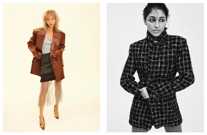 On Saima (right): Fantasy tweed jacket and wool tights, Chanel