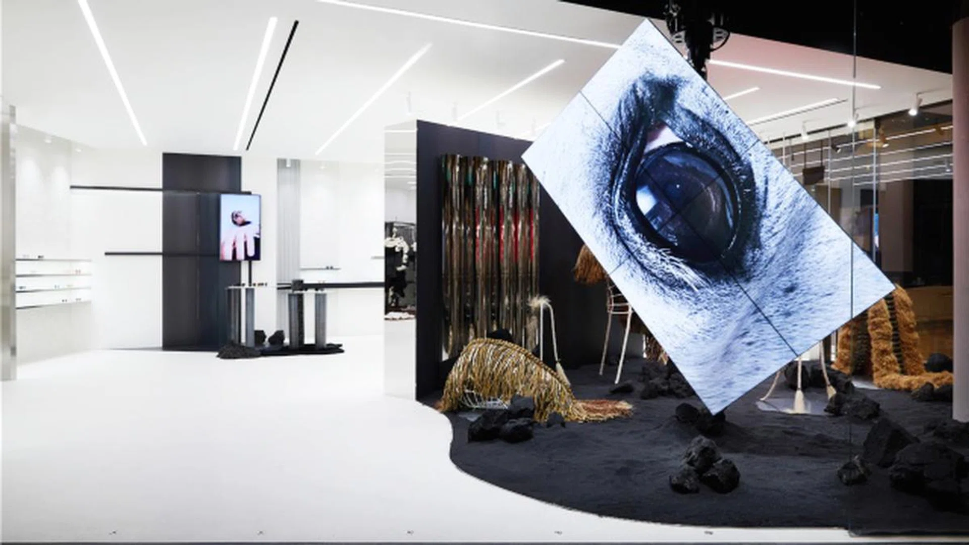 A continuation of Gentle Monster's narrative of the universe at large (think: extraterrestrials traversing planets), The Shoppes By Marina Bay Sands store, through but of course art installations, explores the consequences of ecological change on Earth, as well as fake news.