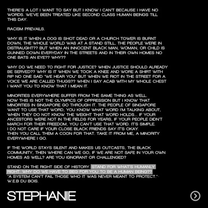 After the anti-racism movement gained momentum in Singapore and all over the world, I was really upset and angry like everyone else who cared for the matter. There were many conversations that sprouted here and in the first few days, I tried to figure out how I should speak up in the most appropriate manner.