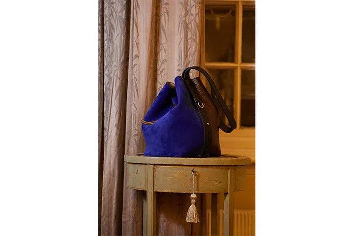 Inspired by a sailor’s duffel, the bucket bag comes with two compartments that can be fastened either by magnetic clasps or a D-ring hook. The adjustable strap also allows the bag to be worn as a backpack.