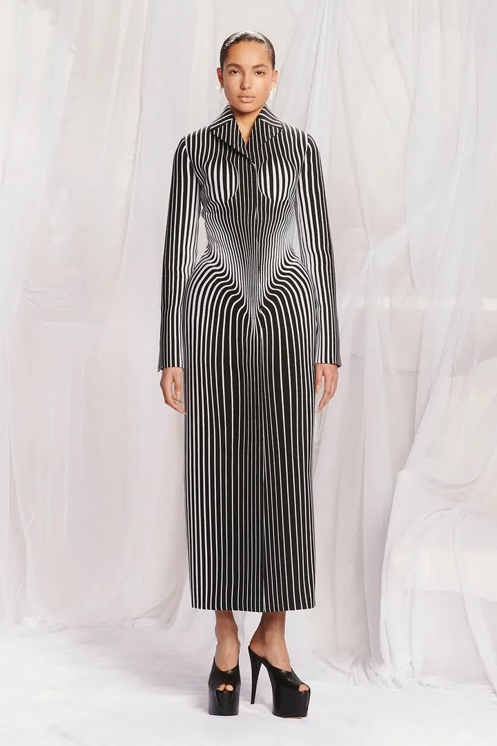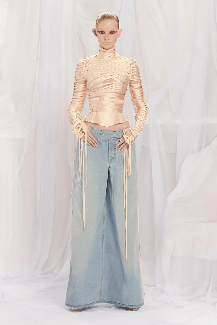 One of the standouts from this couture collection is this reinvention of Gaultier's lingerie-inspired bandage technique, rejigged to form a sexy daywear ensemble. In a quote given to Women's Wear Daily, Martens noted that both brands share a lot of "constructive twists" – inventive and unexpected ways of creating garments.