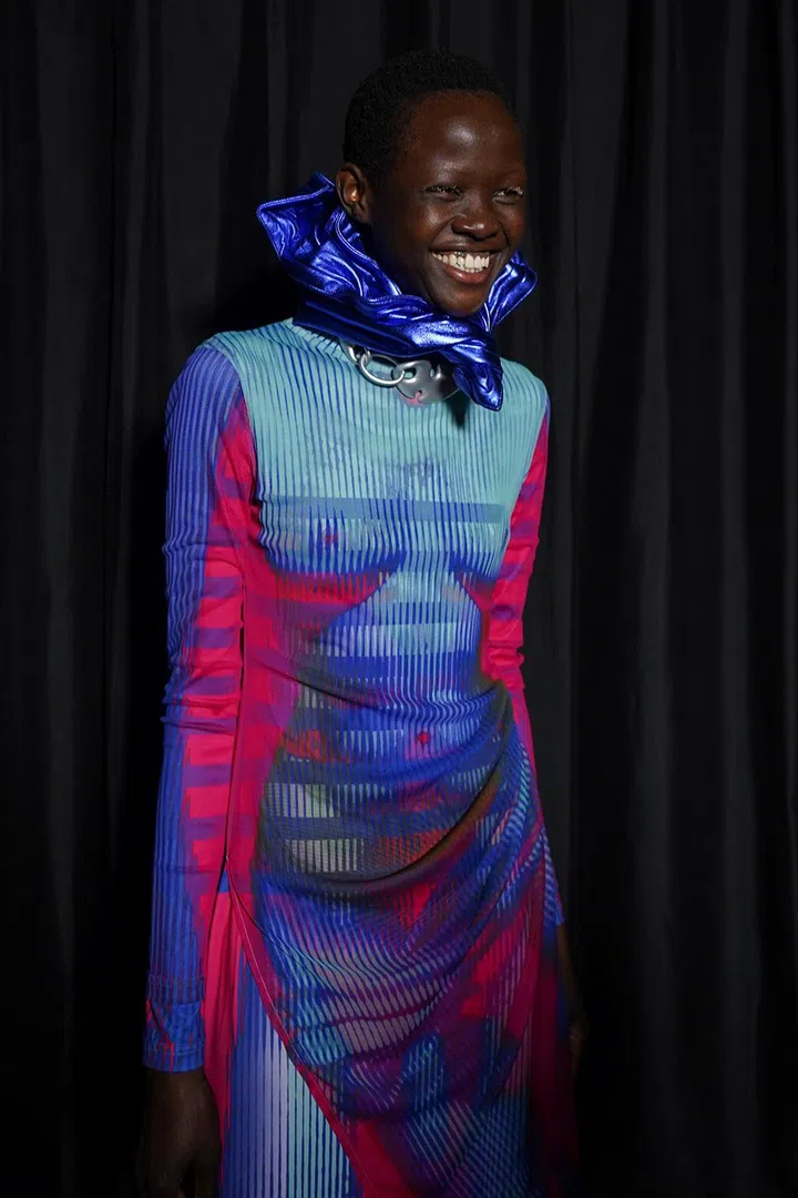 The designs – printed with suggestive outlines of bare bodies – are a reference to Gaultier's Cyberbaba prints from the '90s.
