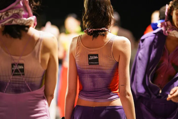 The precise wording of Martens' collection for JPG is "Gaultier Paris by Glenn Martens from Y/Project". In it, Martens mined the vast codes of Jean Paul Gaultier's body of work, reinterpreting corsetry, Breton/mariniere stripes, denim and knitwear.