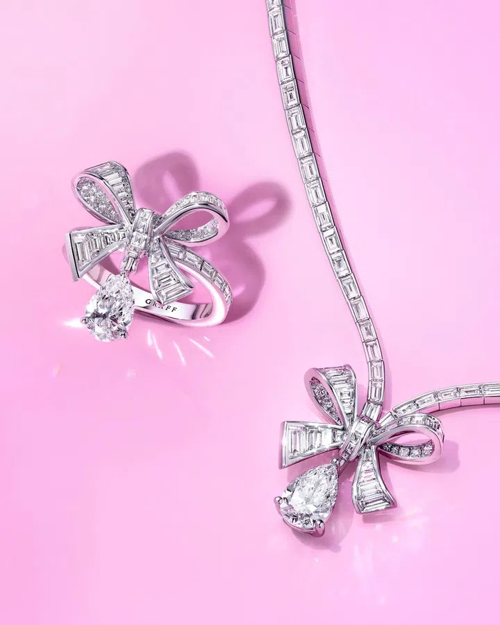 If diamonds are a girl's best friend, just imagine how they would look dripping on sculptural bow-shaped jewellery. If you're picturing an image of unabashed feminity, that's exactly what the new Tilda's Bow collection by Graff is about.