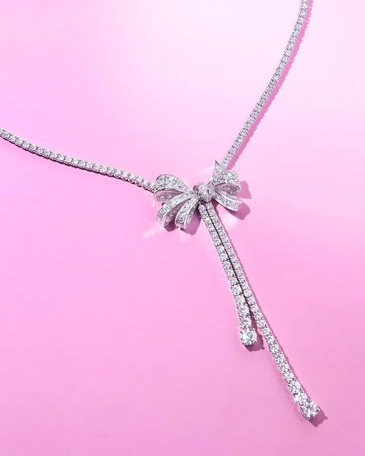 The collection is inspired by the British diamond jeweller's imaginary muse, Tilda, who has a vivid fantasy of turning the classic silk ribbon into precious diamonds with a touch. That surrealist backstory results in some of the most expressive interpretations of bow-style jewellery, showcasing the company's knack for crafting diamond pieces.
