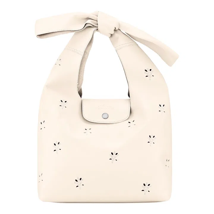 Longchamp’s latest Le Pliage is love at first sight. Dressed in Broderie Anglaise–inspired leather and sprinkled with dainty perforated blooms, it’s giving English rose with a chic Parisian twist. Add the sweet bow detail, and voila – a boho dream bag made for sun-dappled strolls and summer flings.