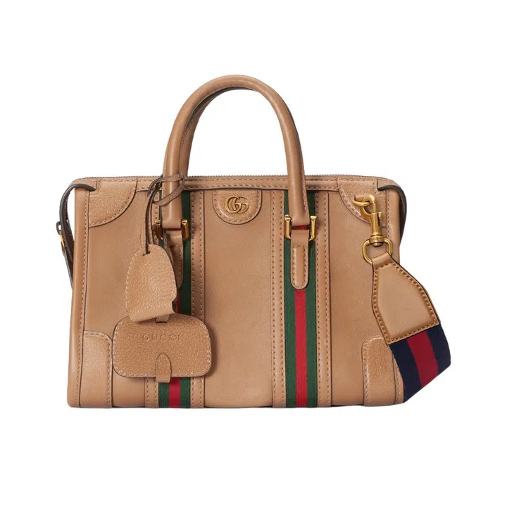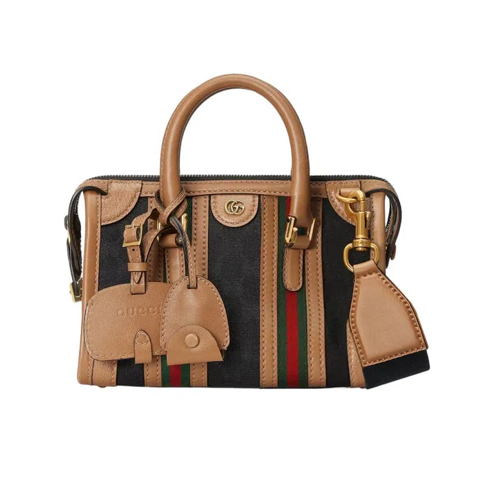 Roomy bags are in again – and always handy for travel, long days out or that grocery run. The latest from Gucci is a structured duffle that comes in S or M, and “Gucci-fied” with the brand’s red-and-green-striped webbing, double G hardware and idiosyncratically ’70s edge.