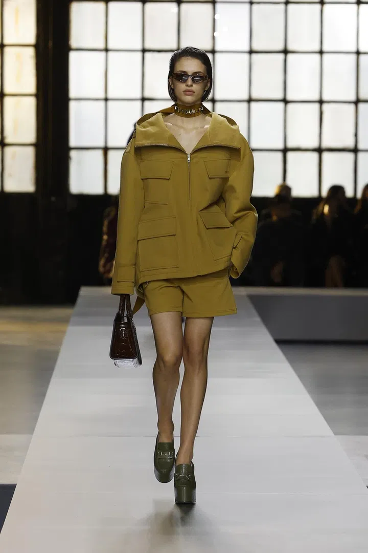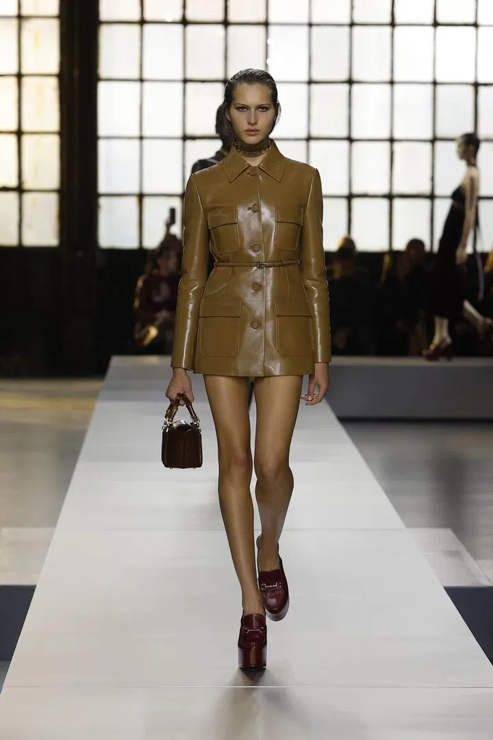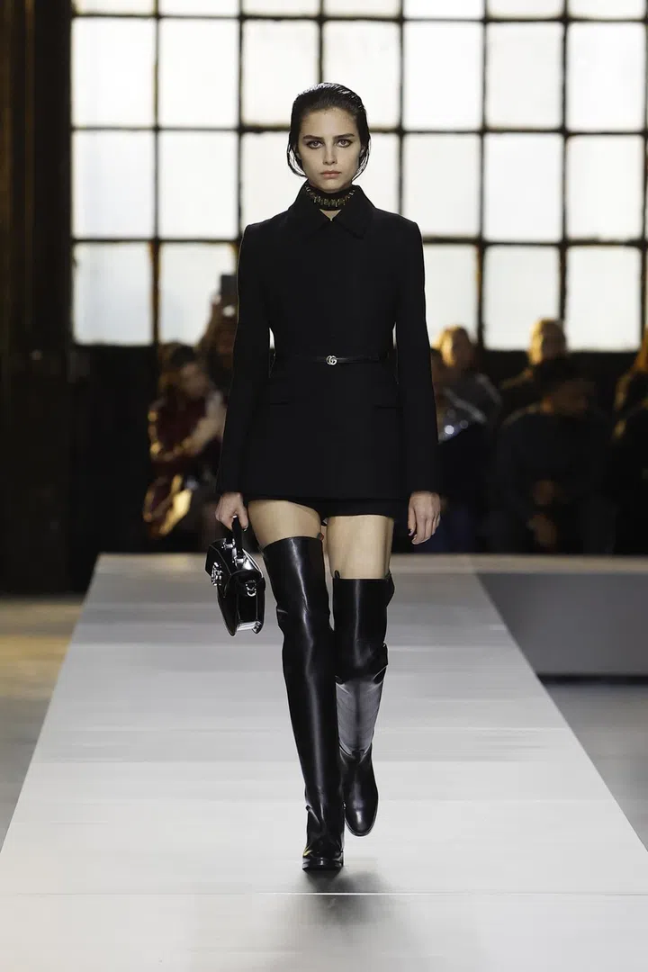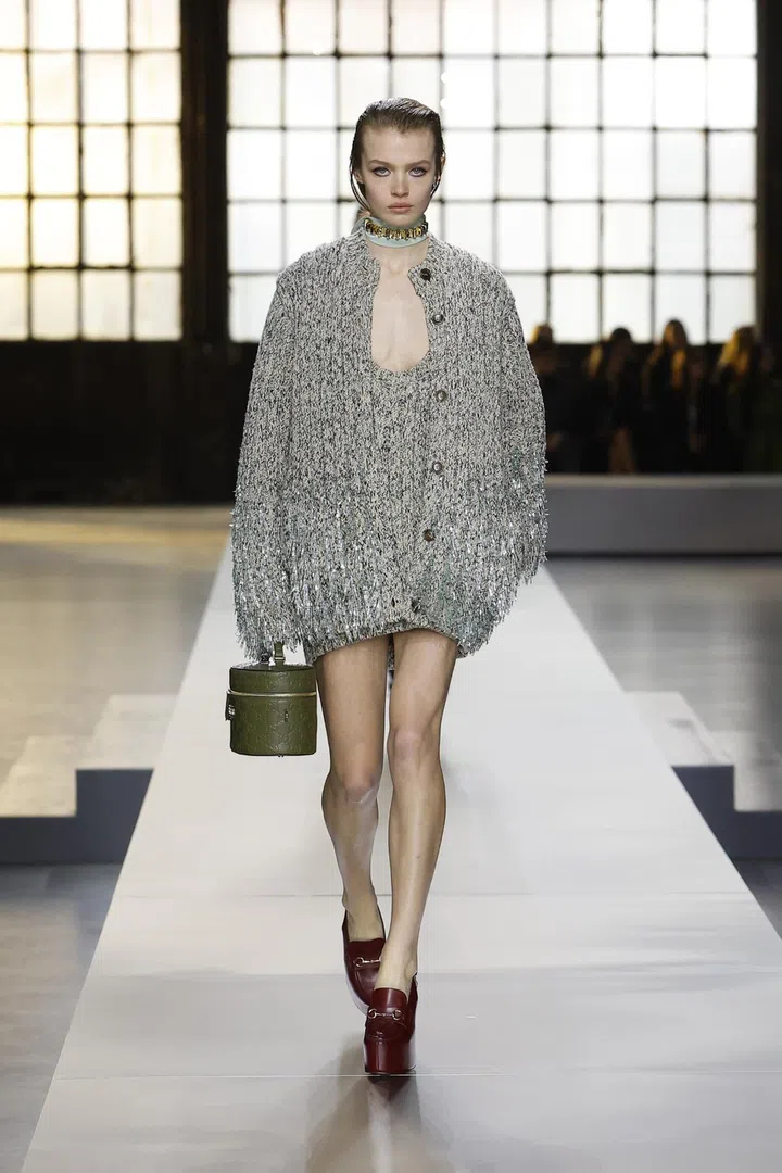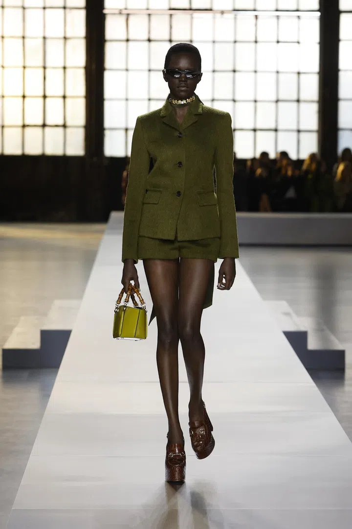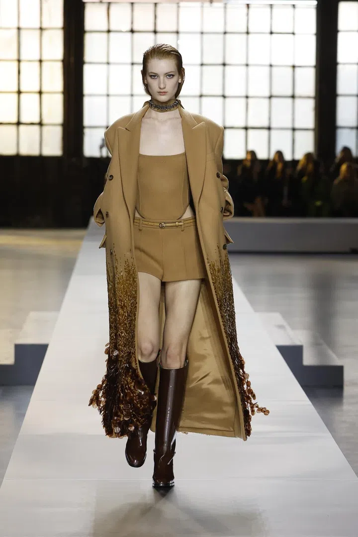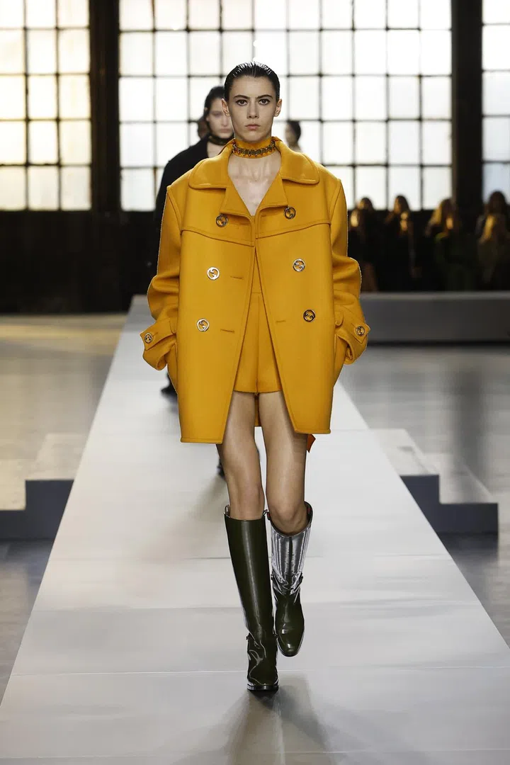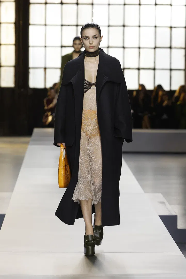 The takeaway: This marks the second women's collection by Sabato De Sarno, who was appointed as Gucci's new creative director in 2023. The Italian designer's sophomore effort built on the easy chic and "get sh*t done" energy from his first collection, opening the 55-look collection with a belted coat dress paired with short shorts.
