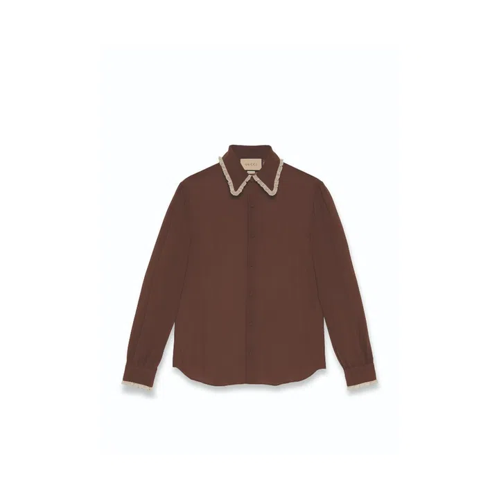 The collaborative collection intertwines Michele's romantic designs with Styles' English heritage. Pieces from the collection showcase English tailoring: the Prince of Wales check pattern appear on double-breasted coats, mother-of-pearl buttons are sewn onto dress shirts, and eclectic-patterned suits complete the lineup.