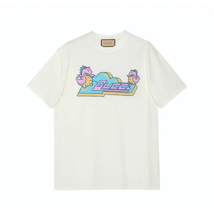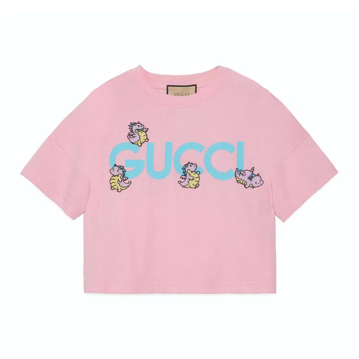 Pink on pink? Sign us up. The pink baby dragons emblazoned across a blue "GUCCI" make for a playful tee that adds a youthful and guileless shine to your outfit.