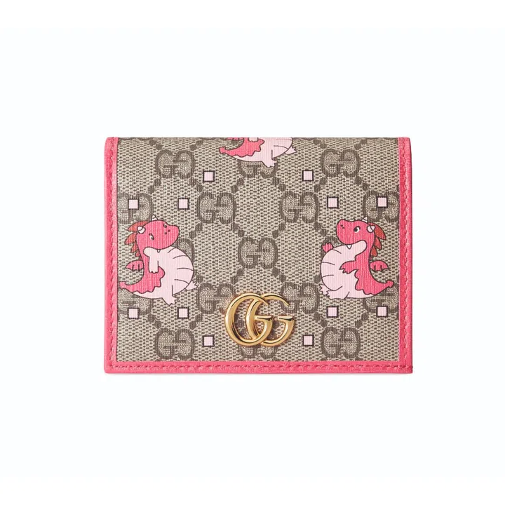 The quintessential double G motif meets the extra cute pink baby dragon in this cardholder. It's the perfect accessory for those of us who prefer to travel light on our visits.