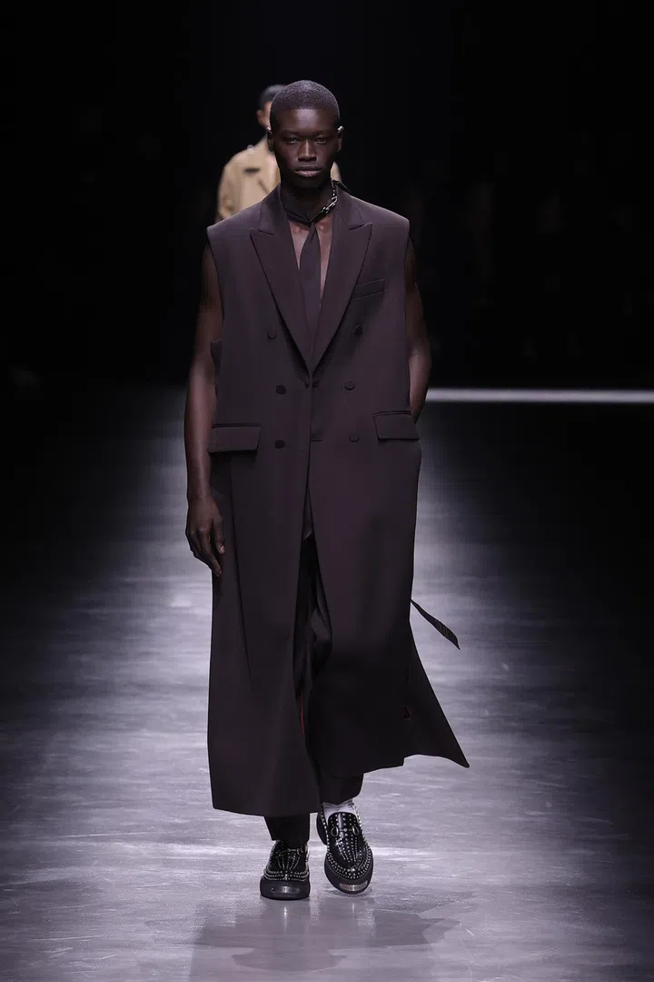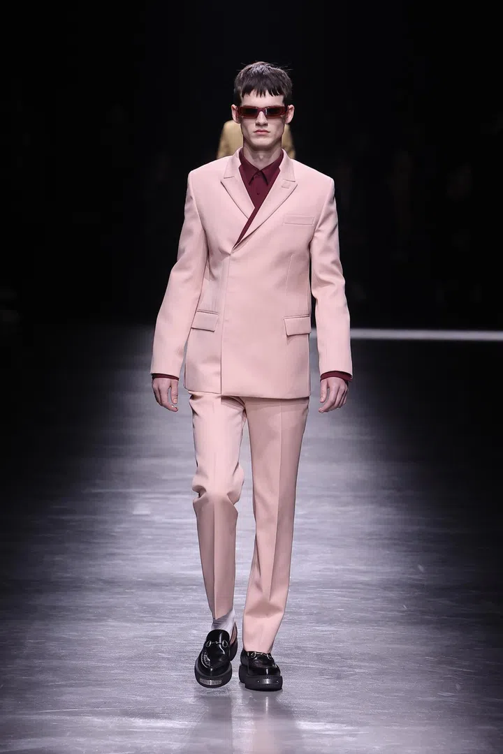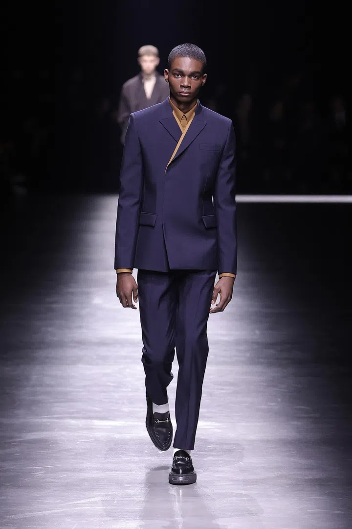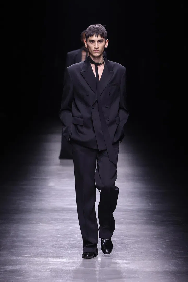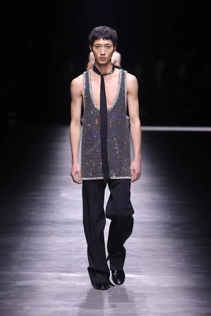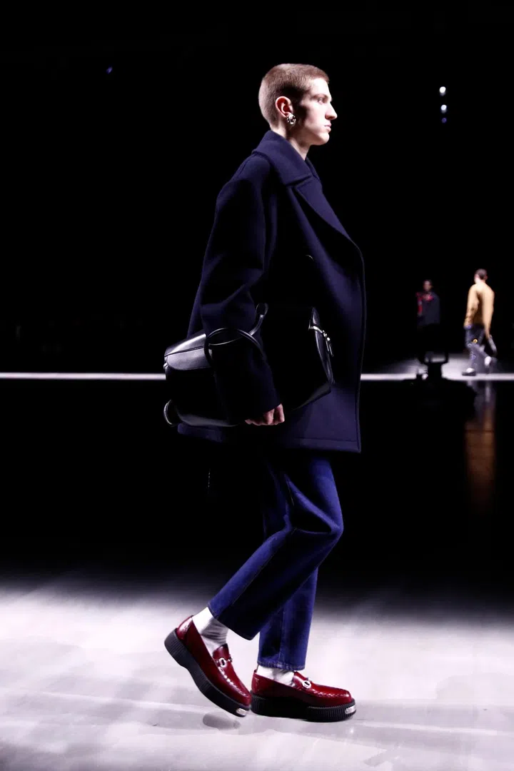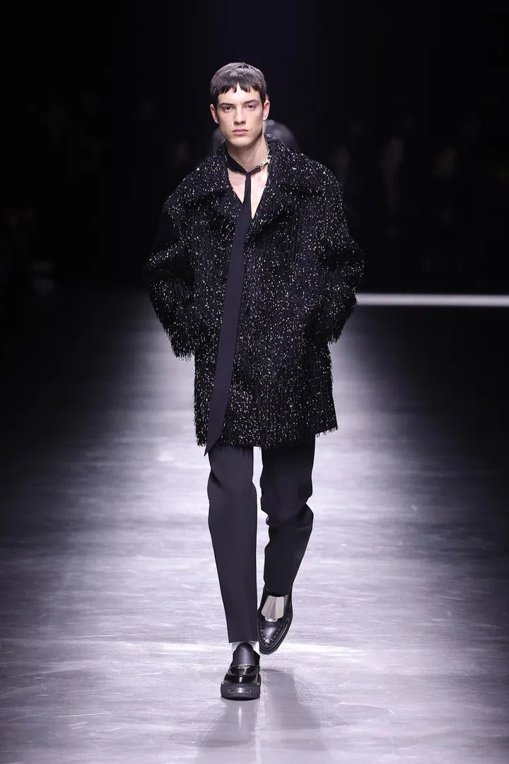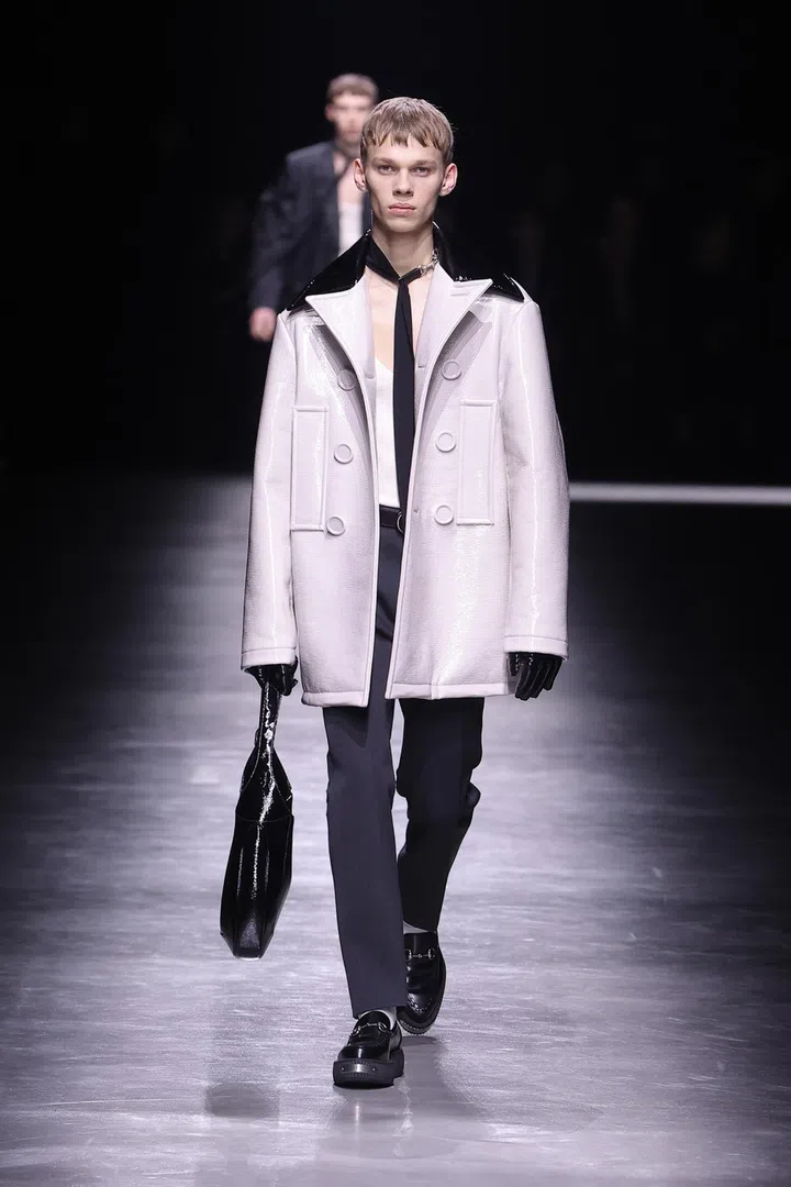 To that end, the men's show came across as a more convincing messenger of De Sarno's vision for Gucci (the extra four months of prep time surely helped) - less gimmicky compared to his predecessor and more focused on wardrobe staples such as polished ultra-long coats, with a side serving of fun (think the bedazzled jackets, tank tops and the rakish silk cravats).