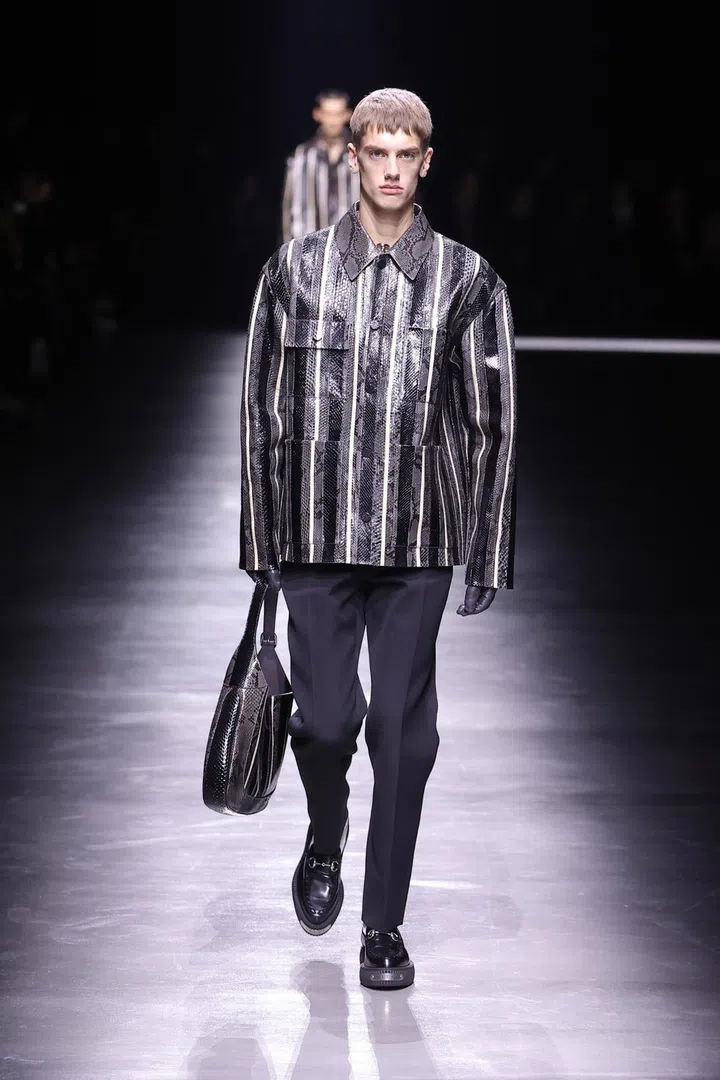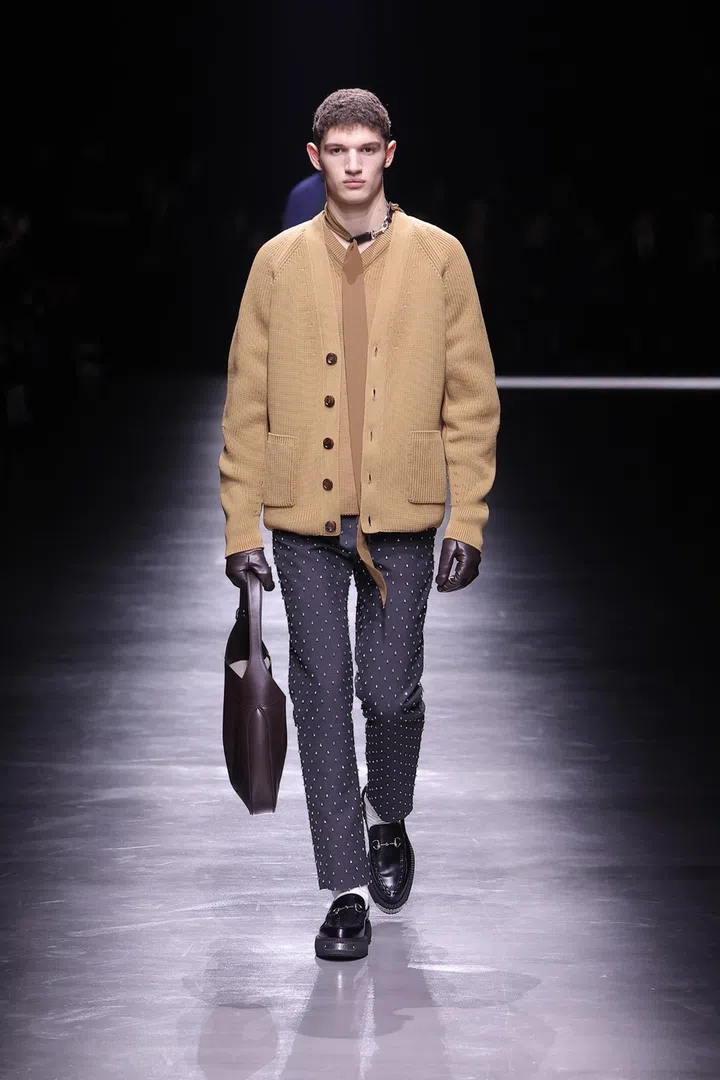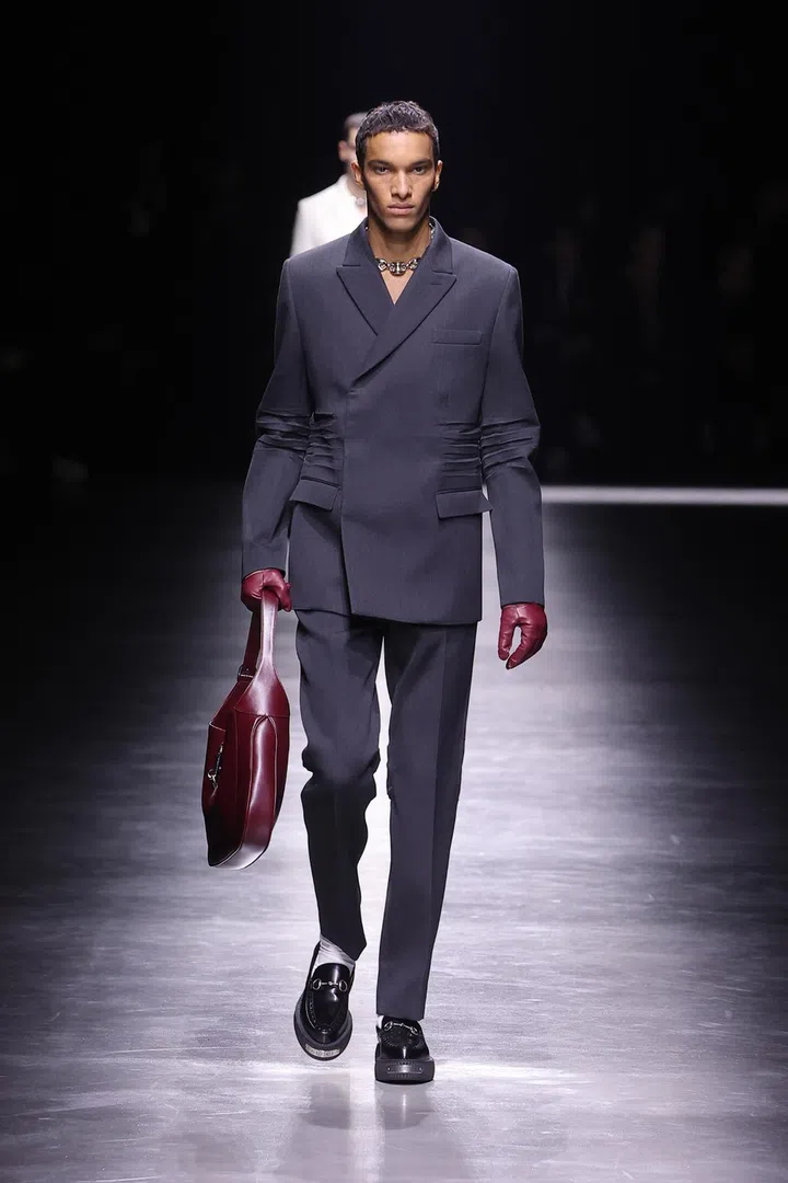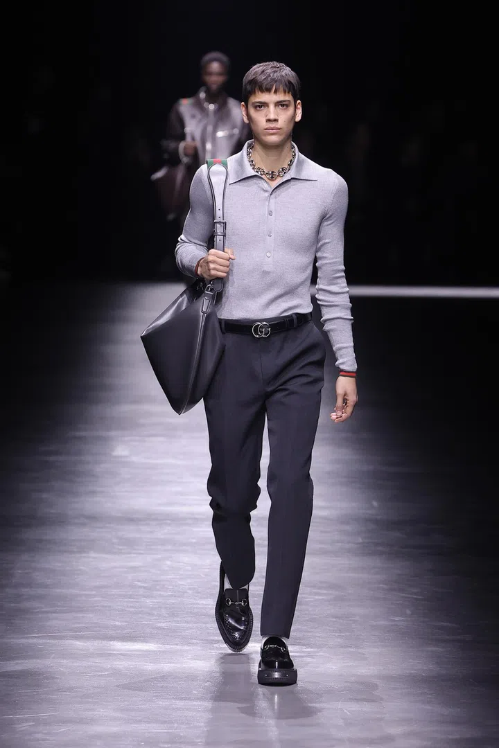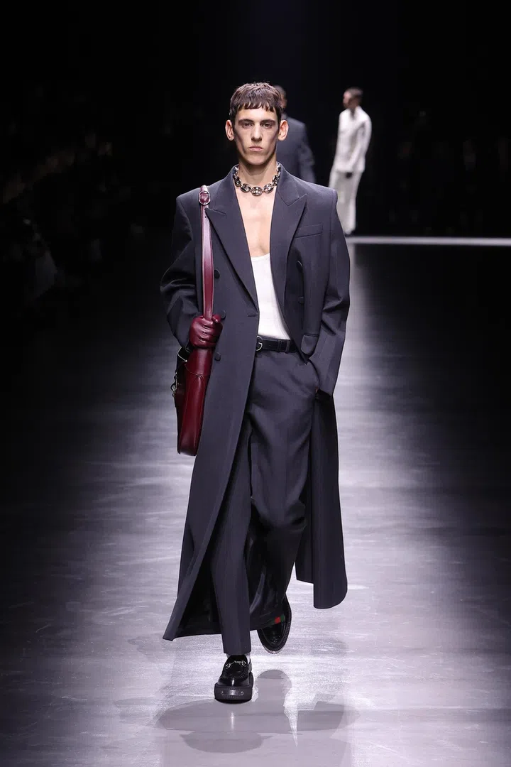 The takeaway: The 56-look collection was in many ways, a doubling down of De Sarno's very first collection for Gucci - the women's Spring/Summer 2024 range we saw last September. According to the press release, the men's Fall/Winter 2024 collection was all about enjoying life as people really live it; "a story of objects - shiny, tactile and cold to the touch but warm to the heart and soul, these are desirable to collect, not for a museum but to enrich everyday life."