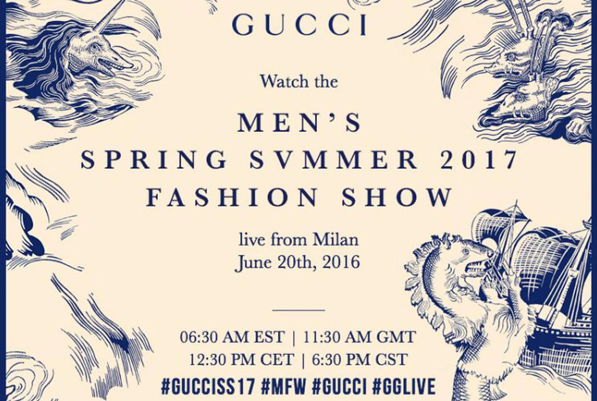 Catch the Gucci Men's S/S '17 Fashion Show Live at 6:30PM
