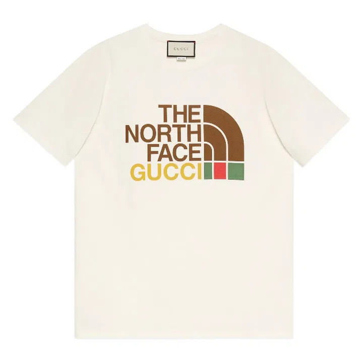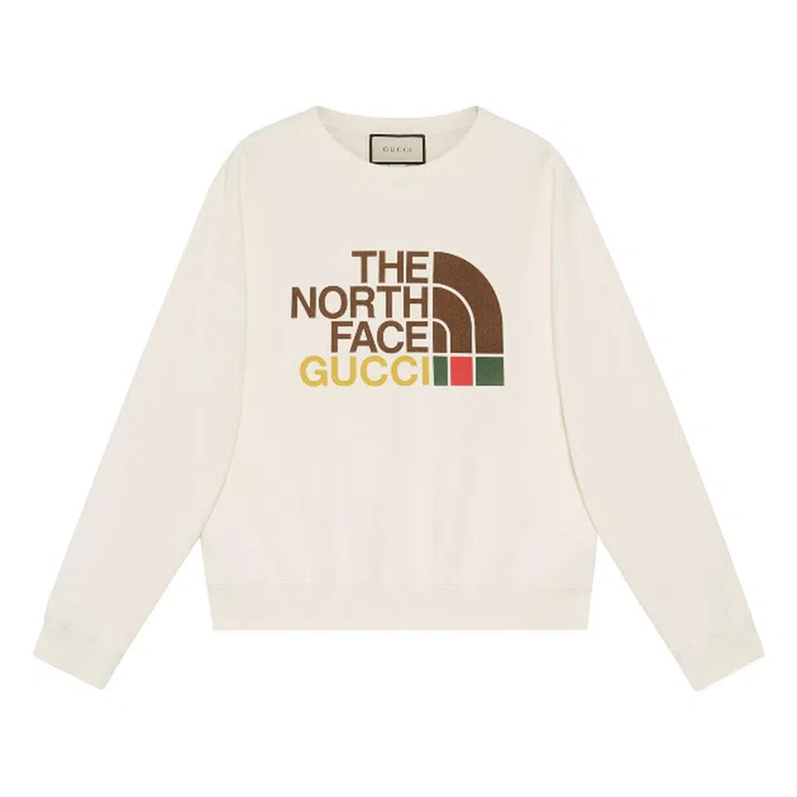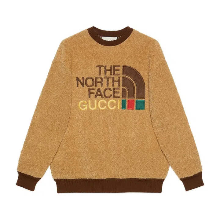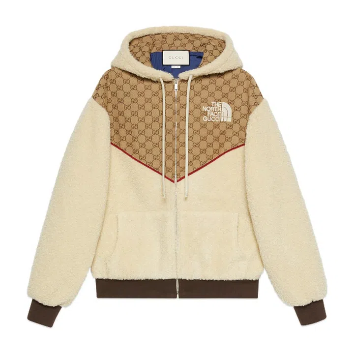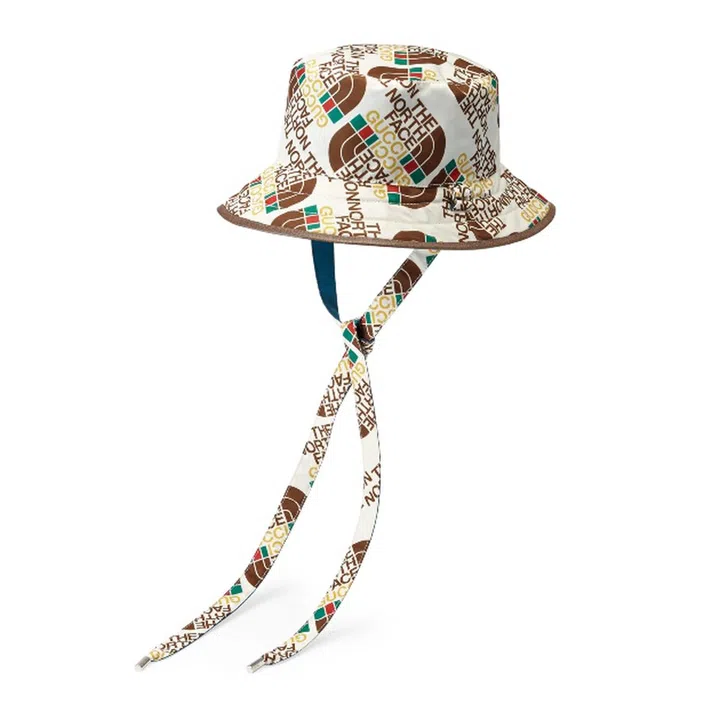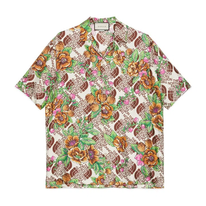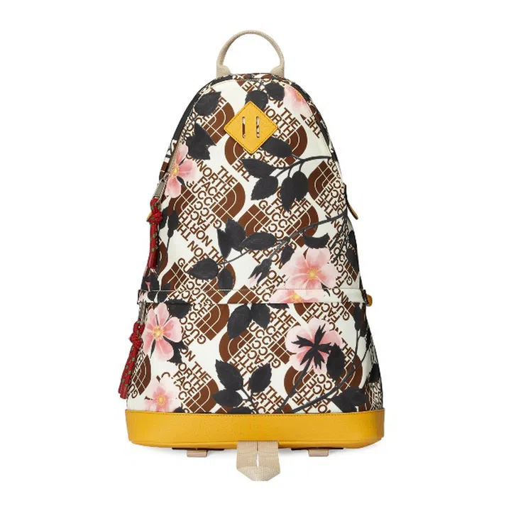 In true Gucci fashion, the designs are emblazoned with plenty of prints ranging from florals to wallpaper prints and a one-of-a-kind rendition of The North Face's iconic quarter-circle logo that co-opts Gucci's red and green house colours.