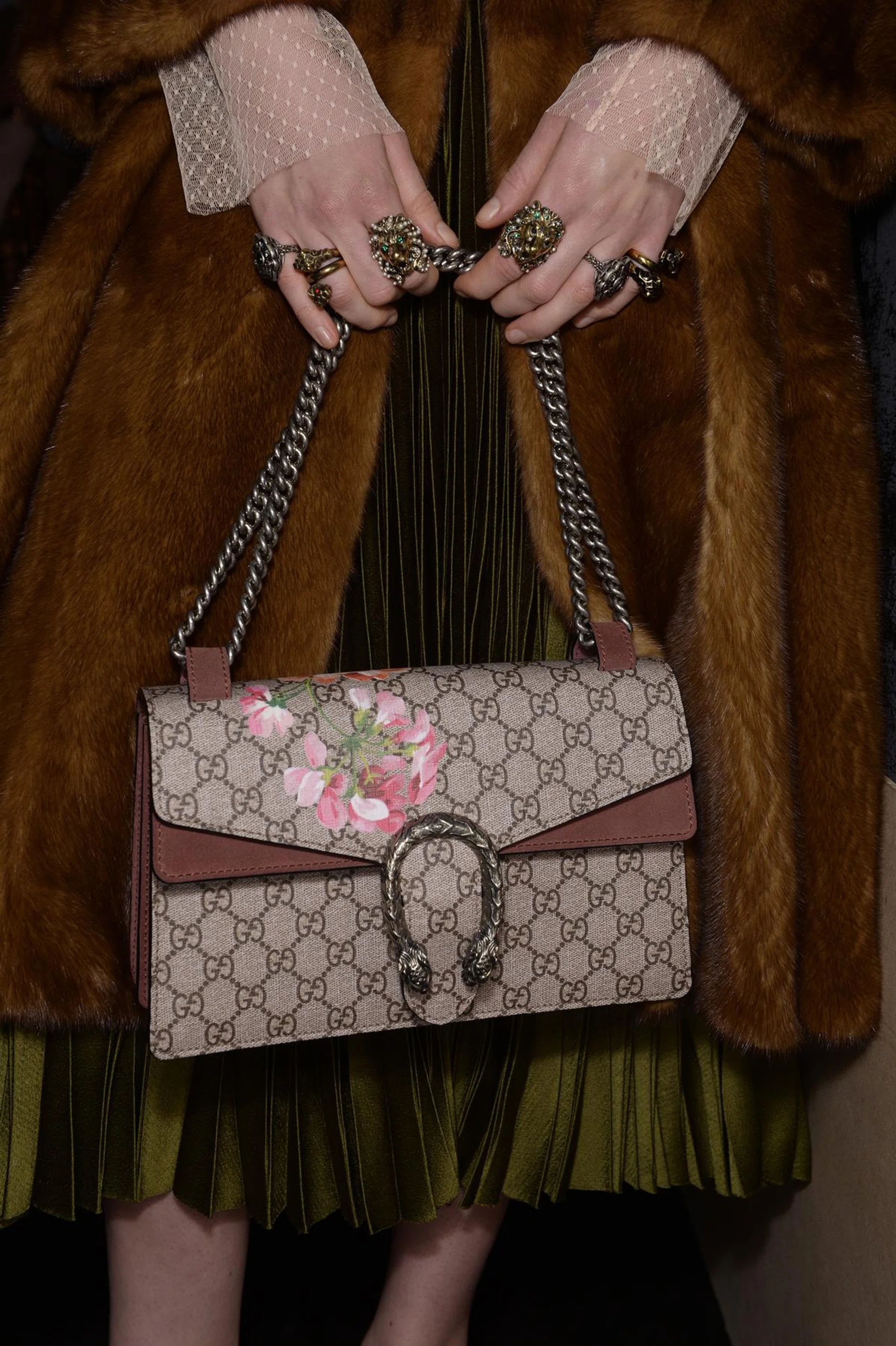 While you're there, don't miss the other guaranteed-It accessory designed by the brand's new star creative director Alessandro Michele: The Dionysus line of bags. Available in a shoulder handbag, waist pouch and backpack style, each sports the classic GG monogram, an antique-like carved buckle and Michele's own painterly floral prints - a combo that perfectly represents the brand's youthful, indie spirit.