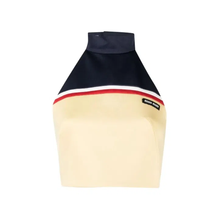 For a varsity-inspired halterneck piece de resistance, this Miu Miu top will do just the trick. Keep the look preppy with a tennis skirt or some denim shorts.