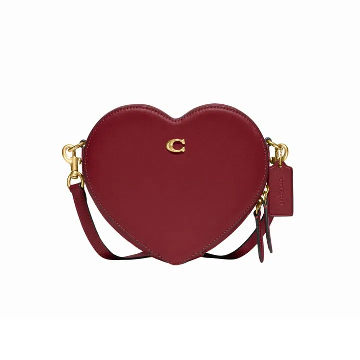 Coach constructed this heart-shaped crossbody with soft glovetanned leather and the brand’s signature 'C' hardware. Besides carrying it as a crossbody and shoulder bag, you can take out the straps turn it into a clutch.
