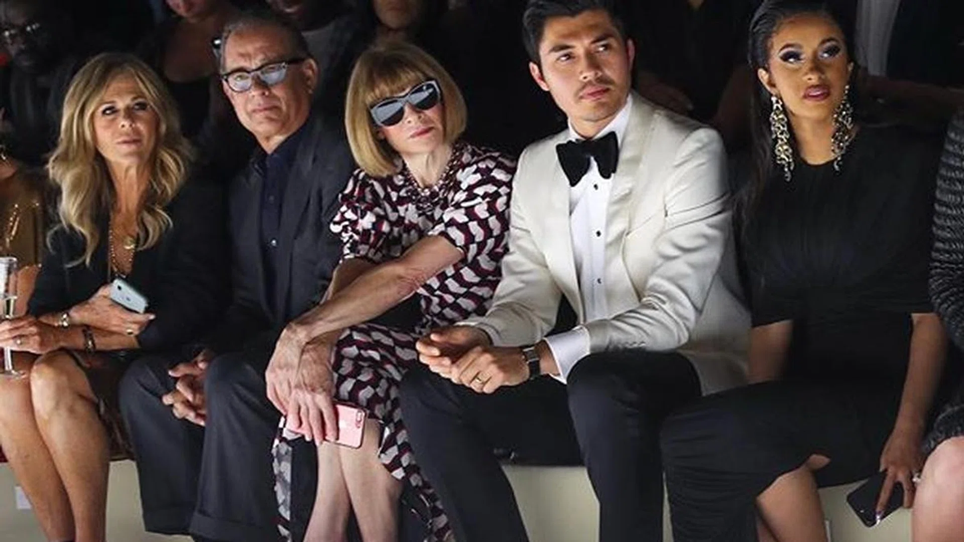Golding was spotted sitting front row alongside Hollywood celebrities Tom Hanks and Rita Wilson, and right in between fashion powerhouse Anna Wintour and breakout music and style star Cardi B, who made an appearance fresh off giving birth to her daughter.