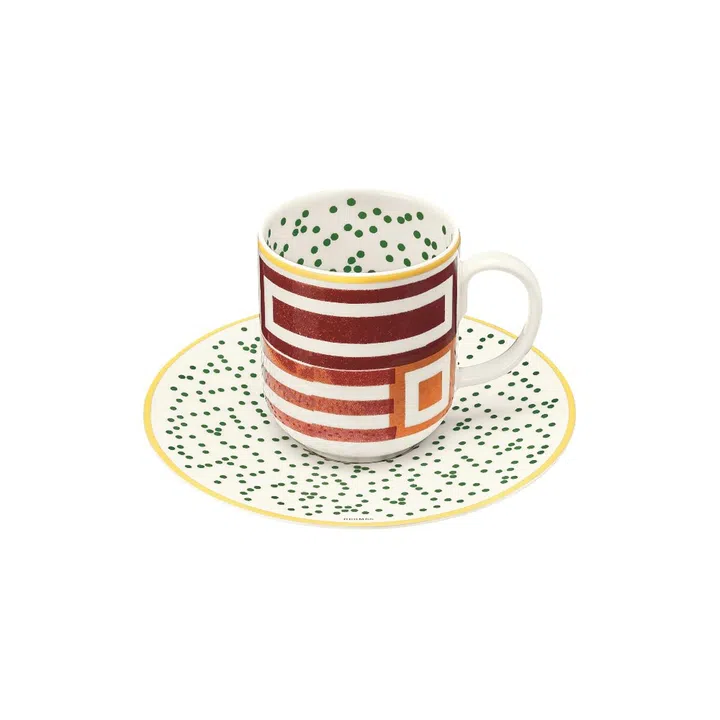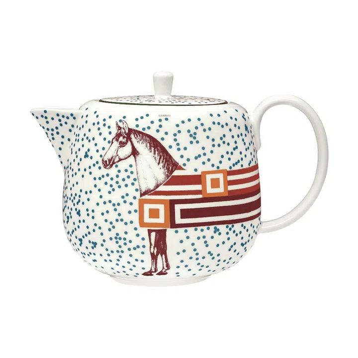 Called Hippomobile, the porcelain tea set collection was designed by artist Gianpaolo Pagni who drew inspiration from jockey silks and the world of cartoons, spans items like teapots, dessert plates, cups, a cake platter in fun vibrant hues.