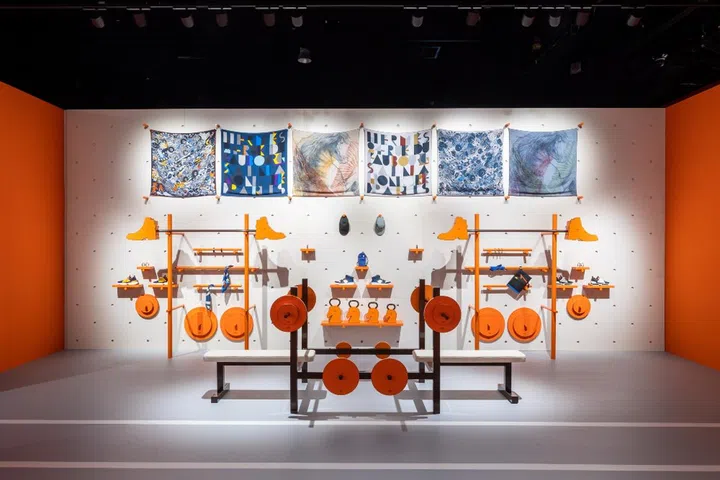 Running from April 14 to April 23 at 16 Orchard Road, the space features a weights wall (complete with custom Hermes barbells and kettlebells), a silk-inspired callisthenics course, a circle-shaped ping-pong table with rackets adorned with silk motifs, a boxing ring that doubles as a photo booth, a juice bar and more.