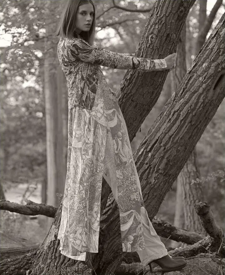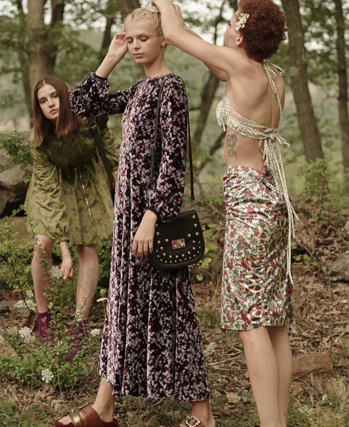 From flower-dappled folk dresses to rustic furs, fashion’s revival of carefree ’60s hippie psychedelia has never felt more relevant. Make peace, not war.