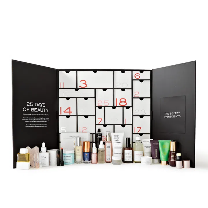 The ultra-chic Net-a-Porter advent calender set houses 17 full-size and eight travel-size products from the e-tailer's impressive inventory of skincare, makeup and body-care brands like Augustinus Bader and 111Skin.
