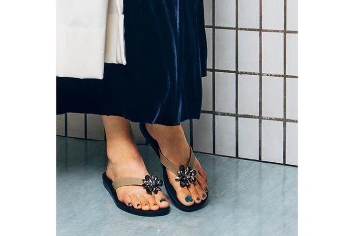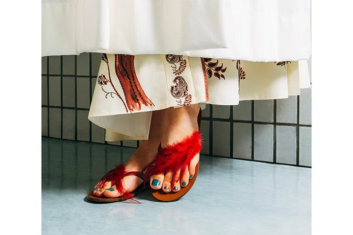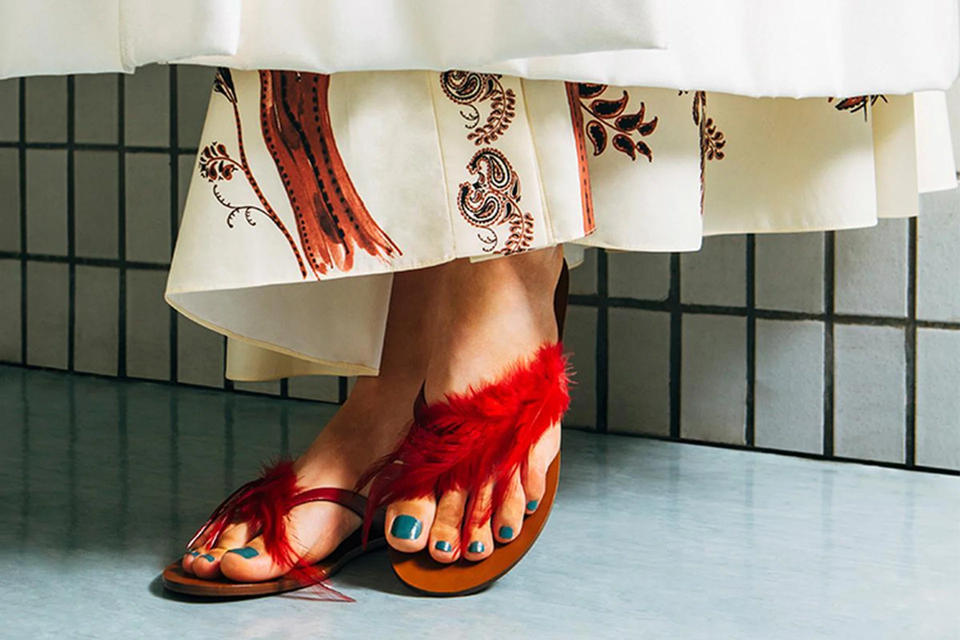 Coming out from under the office desk like mandals and pool slides years ago, the humble flip-flop is going through a style renaissance for Resort with luxurious – and sometimes over-the-top – updates. Take Dior’s, which are made of leather and adorned with plumage, or Valentino’s in rubber with mink fur straps, and even high street renditions that come swathed in statement crystals – all dressy enough to pair with ballgowns and pretty frocks. To mangle a famous lyric, it’s about time you let them see that thong.