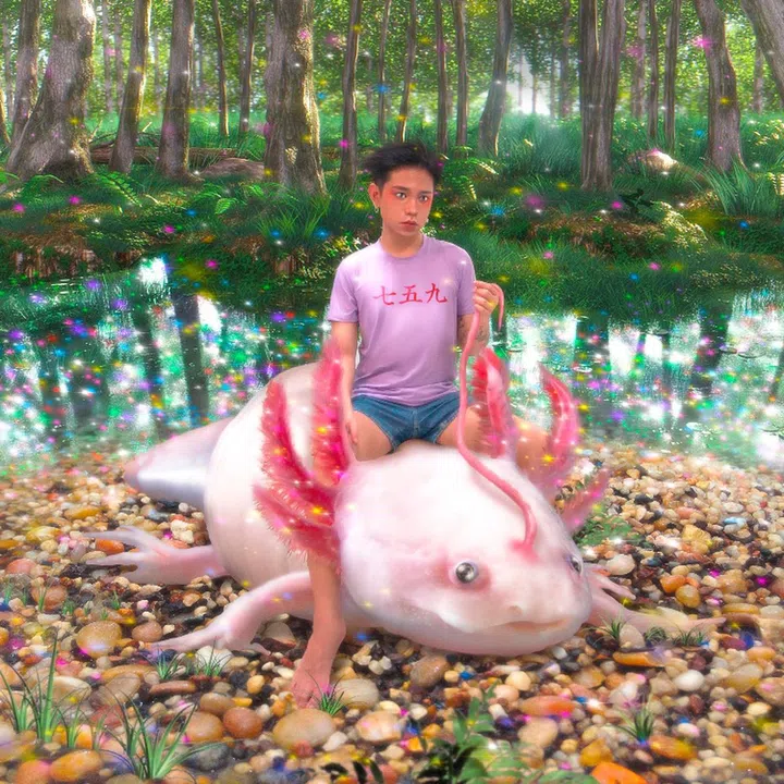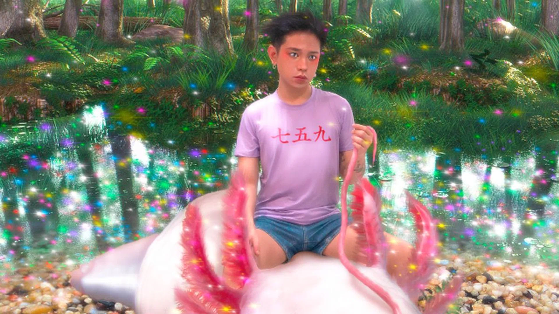 Howie Kim as a Gachapon machine, as the biblical Tree of knowledge of good and evil, as a wholly new amphibian species, a scorpion, a cherub. Why the seeming obsession with himself at the centre of his art? “I often like to celebrate the common stereotypes and perceptions of millennials, one of which is narcissism,” he explains. “Apart from that, I think of using myself as an avatar of sorts in my works, playing different roles and characters for a world that I create. It’s fun. It’s like playing dress up – just digitally.”