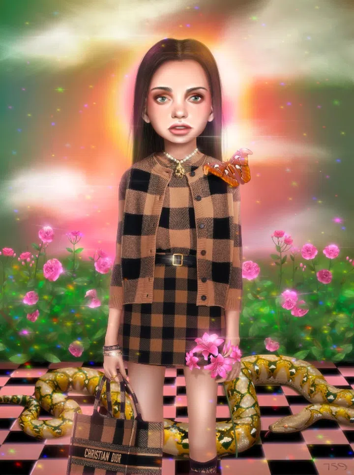 “There are many things: personal stories, people I meet, the Internet, social media, films, photos, stories, anything that I find entertaining, I guess. I am also influenced by other creatives/artists: Britney Spears, drag queens, Paris Hilton, David Lachapelle, Mark Ryden, Cindy Sherman, to name a few.”