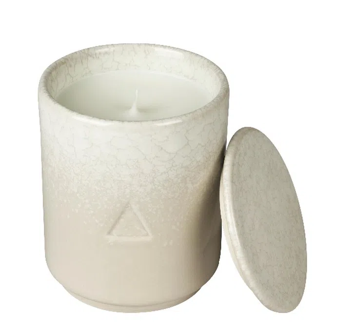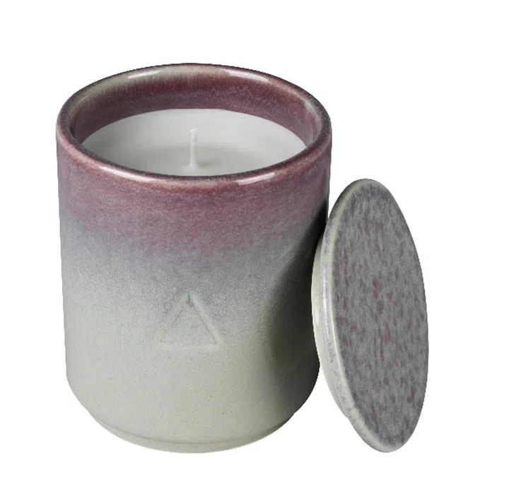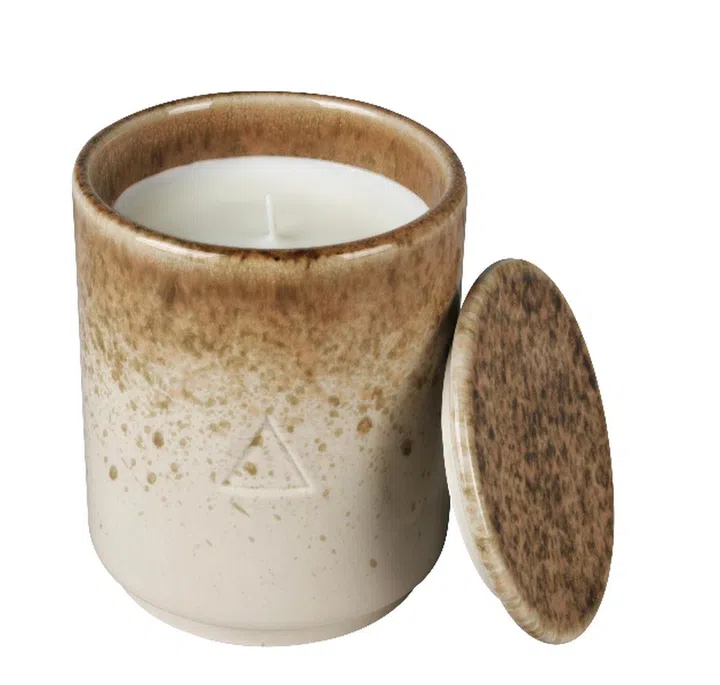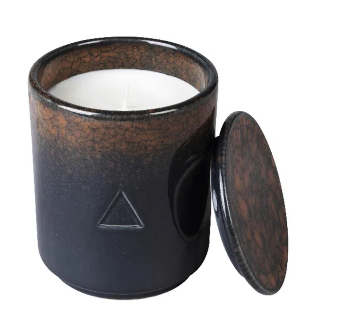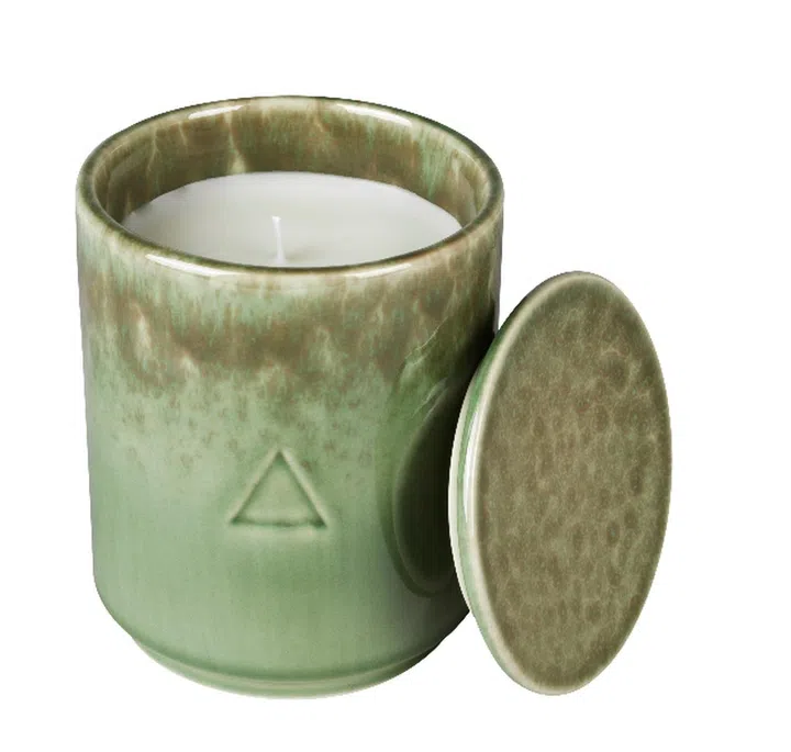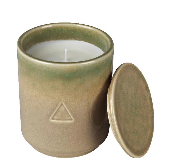 One other thing we love about the collection is how the hand-formed ceramic vessel in which each candle is housed doubles up as an elegant, decorative object that can be reused for storage. Glazed with a blend of two colours chosen by Gorham, the jars come with a triangle-shaped marking that references one of the most popular ways people understand fragrance: the top, middle, and base notes.