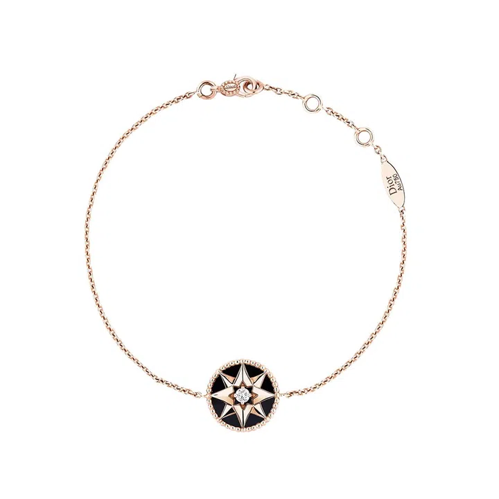 Christian Dior's many personal quirks continue to be an inspiration. His superstition, for example, inspired jewellery artistic director Victoire de Castellane to design the Rose des Vents line. The eight-point star motif is meant as a reference to Dior's own lucky star and meteorological wind roses. Like a lot of the creations in the range, this bracelet comes with a diamond-set coloured stone – onyx in this case – that can be flipped over for a simpler, more subtle face.