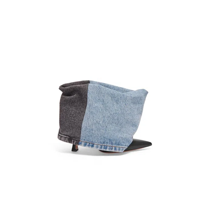Loewe puts its own witty stamp on the term "boot-cut jeans" with this boot design that features the cut-off cuff from a pair of dungarees.