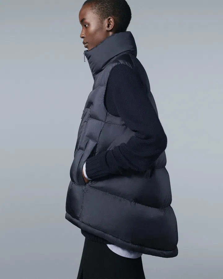 Ms Sander continues her discreet experimentations of silhouettes and details, seen best on pieces such as an asymmetric cashmere long coat, or a men's colour-blocked parka. There's even a rare bag – a simple leather shoulder number that Old Celine-types will lap up.
