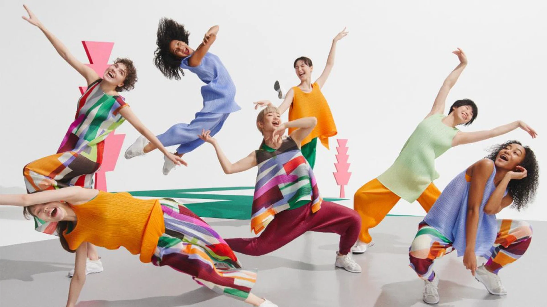 For further inspiration, check out the dynamic campaign video, where models jump and frolic in Pleats Please garments, with each leap representing a musical note. Together in motion, they embody a lively symphony exactly what an Issey Miyake creation represents.