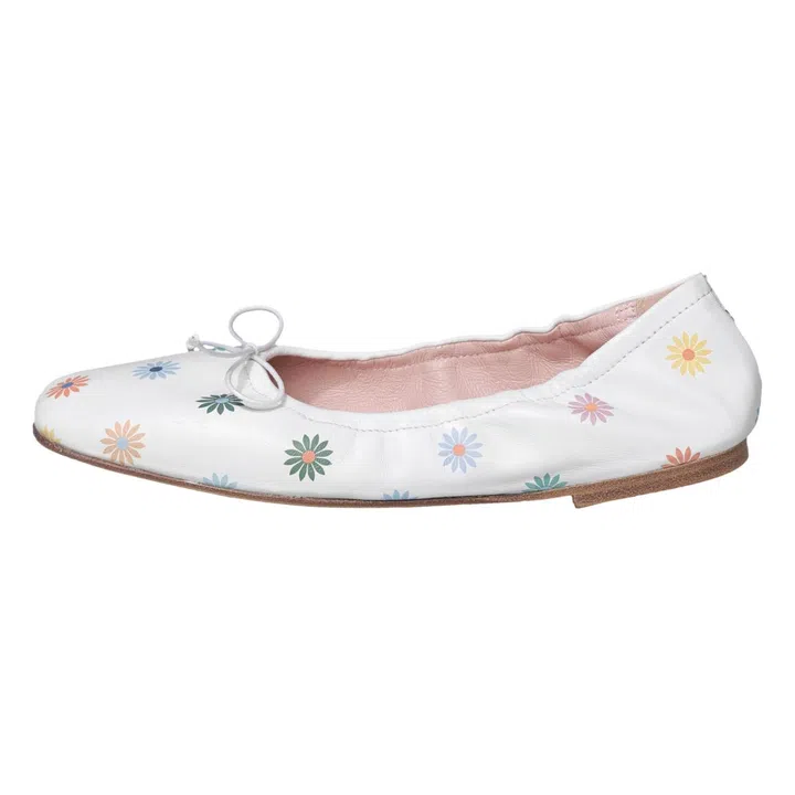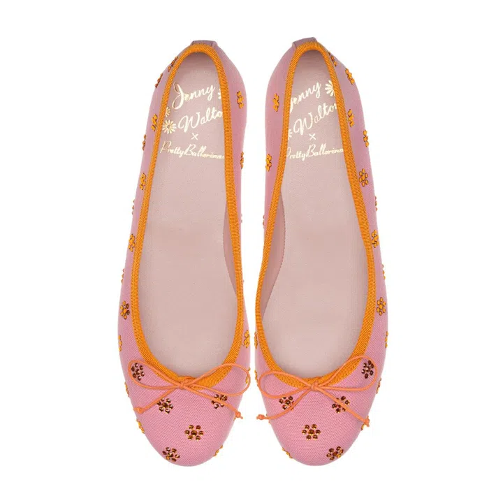 "My personal style tends to be a bit classic but hopefully usually [comes] with a twist and something unexpected, like a vintage bag or piece of jewellery. I grew up watching a lot of Audrey Hepburn films and going to antique markets with my mother so I was always aware of a more classic style and older pieces. The ballerina flat designs were inspired by the jewellery that I create and the idea of taking the different floral elements I already use but applying them to shoes."